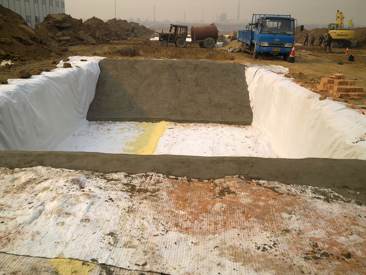 鈉基膨潤(rùn)土防水毯在運(yùn)輸和現(xiàn)場(chǎng)儲(chǔ)存中的防潮、防壓、防火和防損要求嚴(yán);地下連續(xù)墻和護(hù)壁柱梁基面鋪掛鈉基膨潤(rùn)土防水毯的要求高、難度大;尤其是防水毯搭接接頭方式、尺寸、粘合和端邊釘壓錨固技術(shù)復(fù)雜、質(zhì)量要求高。